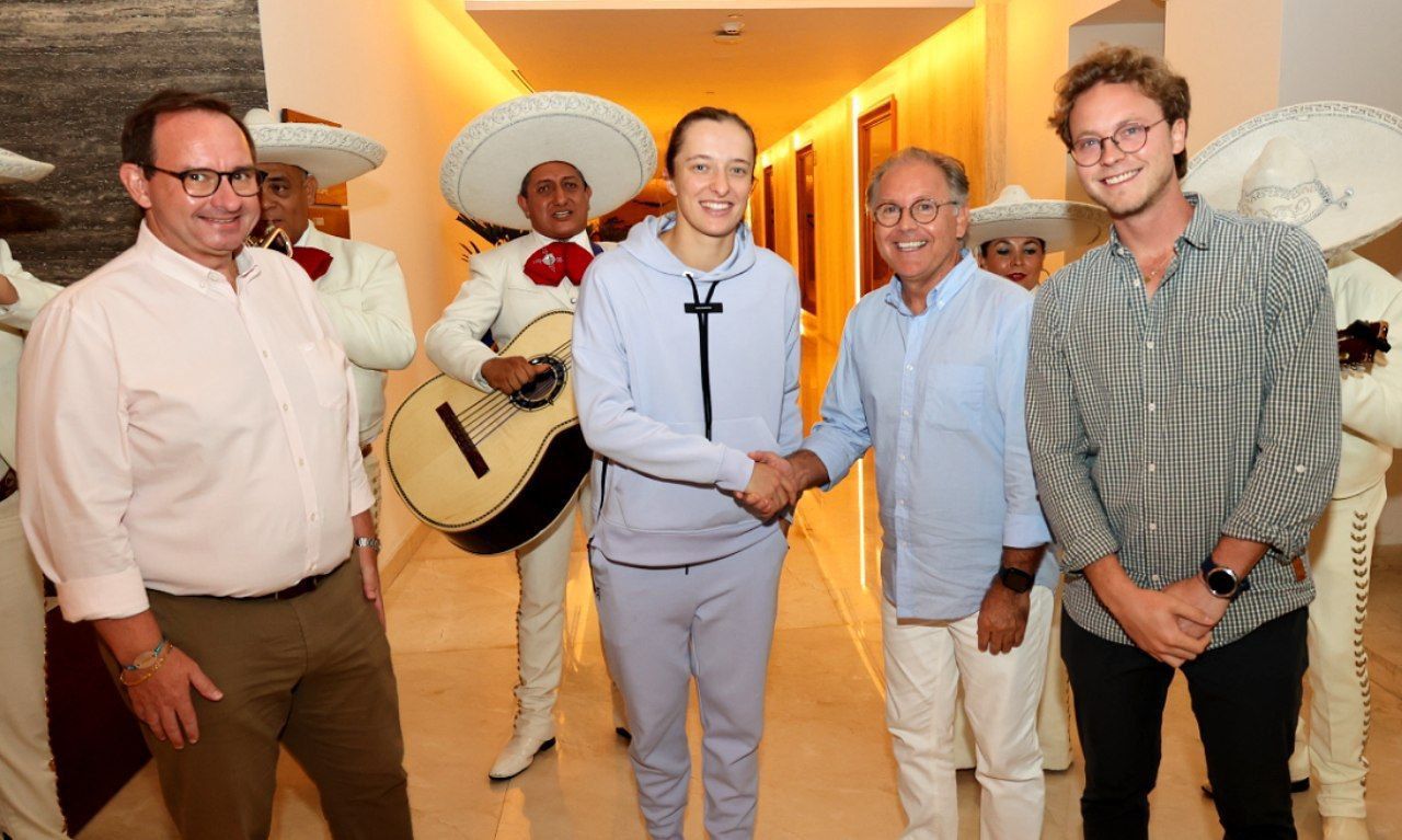 La joya de Varsovia fue recibida con música de mariachi, entre medios de comunicación que se dieron cita para recibirla y conseguir sus primeras impresiones. Iga llega a este certamen como la tenista número 2 del rankig mundial de la WTA.